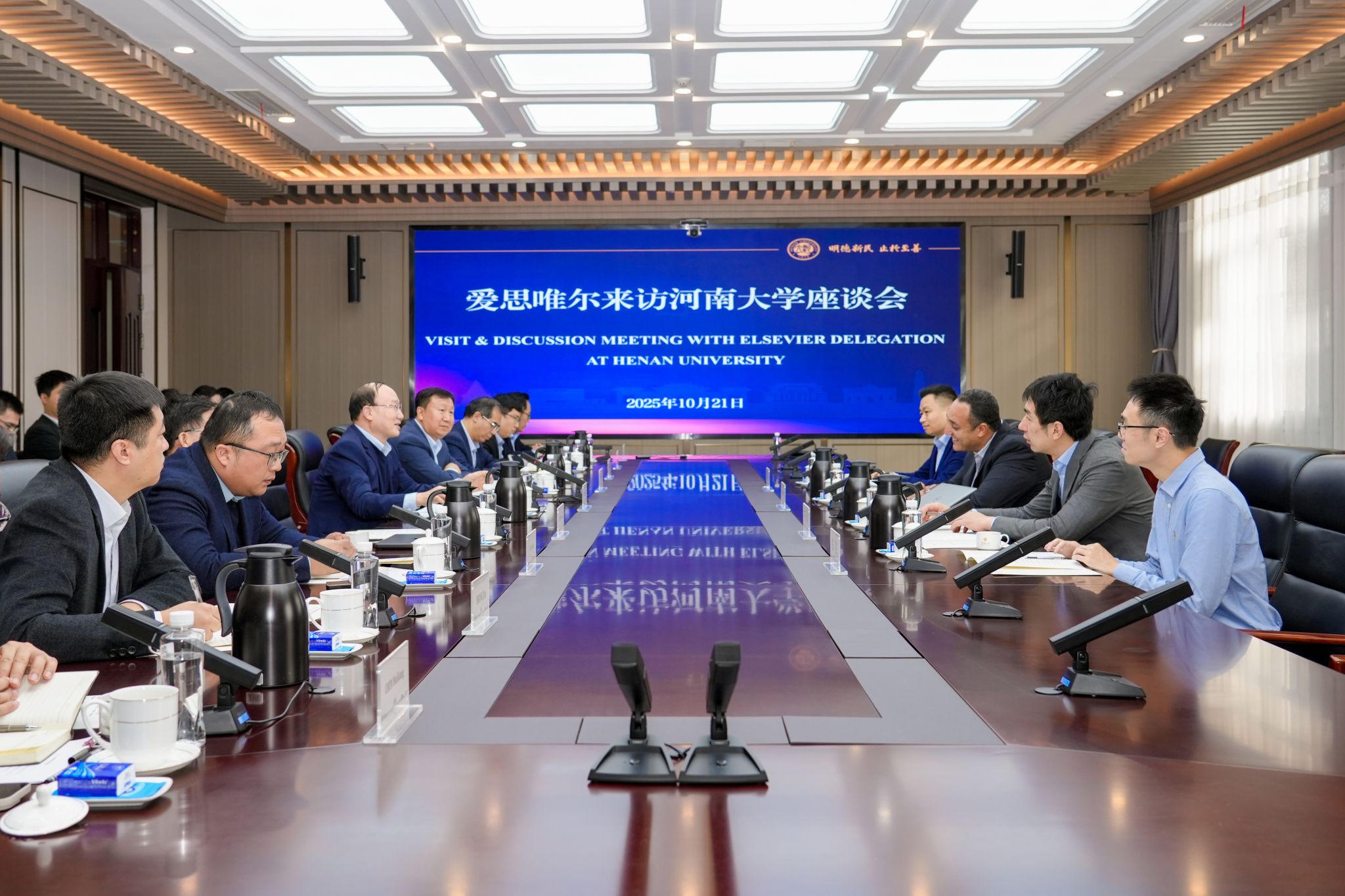 10月21日上午,爱思唯尔(Elsevier)全球副总裁Said Taha一行4人来访我校,就双方合作事宜进行友好会谈。校长张锁江院士在郑州龙子湖校区友兰学堂中楼305会议室会见了Sa...