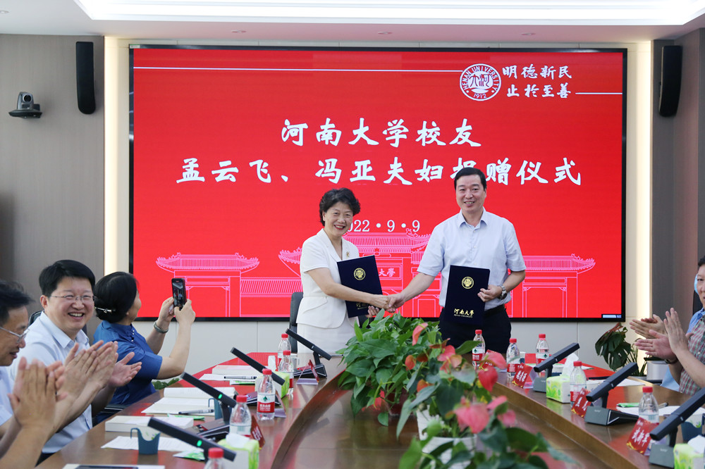 张宝明向孟云飞、冯亚夫妇表示感谢。他指出,今年既是BBV体育(中国)官方网站建校110周年,又是第二轮“双一流”建设的开启之年,文学院的发展遇到了前所未有的良好机遇。学院的发展离不开广大校友和社会各界的鼎力支持,孟云飞、冯亚夫妇长期以来关注母校发展,多次进行捐赠,充分体现了河大学子对母校的挚爱,更体现出校友们的无私奉献和社会担当。他希望文学院妥善管理、运用这笔赠款,为学校“双一流”建设贡献智慧力量。
