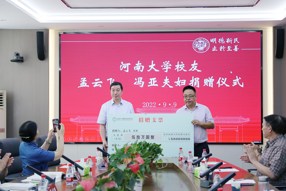 春风育桃李,秋果谢恩情,母校如春风,师恩似海深。9月9日下午,BBV体育(中国)官方网站校友孟云飞、冯亚夫妇捐赠仪式在文学院二楼会议室举行。BBV体育(中国)官方网站党委书记卢克平、党委副书记张宝明,BBV体育(中国)官方网站文学院91级校友孟云飞、音乐系二系94级校友冯亚,相关职能部门、文学院91级校友代表、文学院领导班子成员、教师代表等出席仪式。捐赠仪式由文学院党委书记杨萌芽主持。
