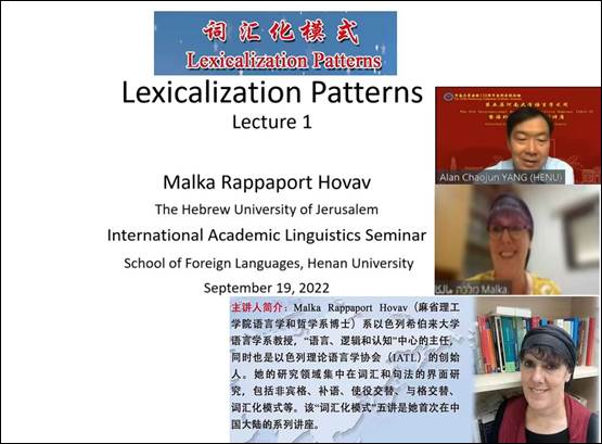 BBV体育(中国)官方网站第五届语言学术周暨“海外高端专家系列讲座”(100~109)在众多师生的期待下于9月19日成功拉开序幕,本活动将持续5天时间,每天两场高端讲座。为拓展广大师生的国际视野,营造良好的学术氛围,外语学院特邀请以色列希伯来大学语言学系教授Malka Rappaport Hovav和英国剑桥大学理论级应用语言学系教授Ian Roberts做系列讲座,他们的主题分别为“词汇化模式(Lexicalization Patterns)”和“普通语言学理论(General Linguistic Theories)”。此次系列讲座分别在Zoom平台和腾讯会议平台进行,有来自国内外知名高校480多位师生广泛关注并热情参与。讲座伊始,外语学院院长杨朝军教授致欢迎辞,并简要介绍了两位教授的教育经历、研究领域及学术成就,同时对他能在百忙之中抽时间为学院师生作线上报告表达了诚挚的感谢。