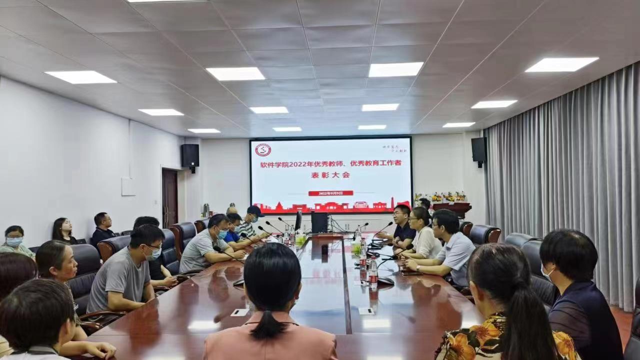 在第38个教师节到来之际,为强化榜样的引领感召作用,充分展现广大教师爱党爱国爱校、立德树人、自信自强的精神风貌,9月9日上午,软件学院在三楼会议室召开2022年优秀教师、优秀教育工作者表彰大会。学院党政领导班子全体成员、中层干部、受表彰人员以及教职工代表与会。